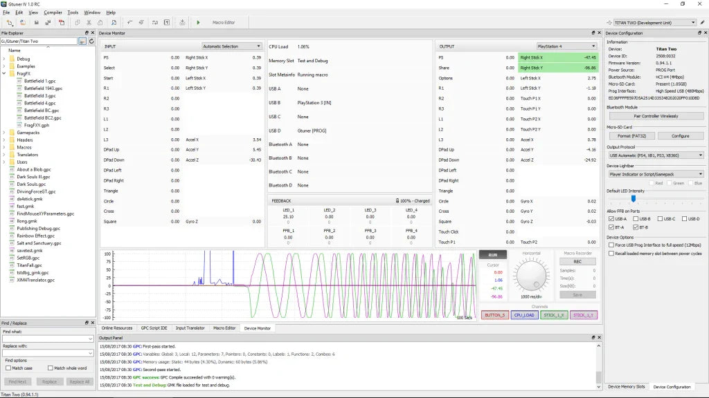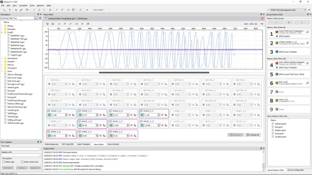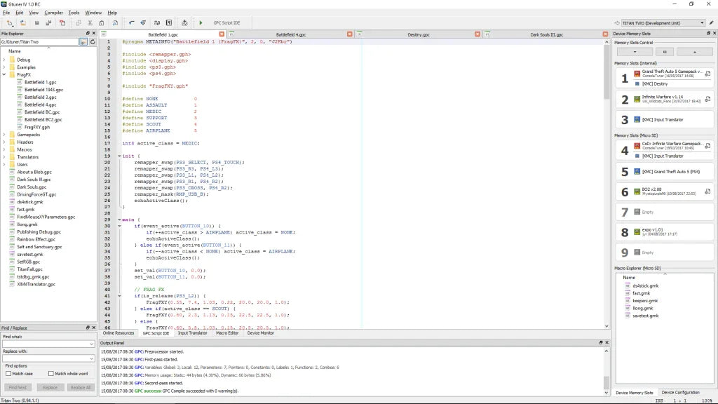 Erstellen, debuggen und veröffentlichen Sie Ihre eigenen Skripte mit einer vollwertigen Entwicklungsumgebung. Die Skriptsprache GPC2 ermöglicht die vollständige Kontrolle über das Titan Two-Gerät und alle angeschlossenen Spielgeräte.